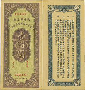 抗日戰(zhàn)爭爆發(fā)后,1937年9月下旬,八路軍第一二零師進(jìn)入晉西北地區(qū),創(chuàng)立了晉西北抗日根據(jù)地,建立了興縣農(nóng)民銀行。到1938年12月,開辟了以大青山為依托的綏西、綏南、綏中三塊游擊根據(jù)地,并逐步同晉西北根據(jù)地連成一片,構(gòu)成晉綏抗日根據(jù)地。1940年5月,以興縣農(nóng)民銀行為基礎(chǔ),成立了晉西北農(nóng)民銀行,后改為西北農(nóng)民銀行,發(fā)行西北農(nóng)民幣,流通于晉綏地區(qū)。后晉綏邊區(qū)與陜甘寧邊區(qū)統(tǒng)一為西北解放區(qū),該行與陜甘寧邊區(qū)銀行合并,統(tǒng)稱西北農(nóng)民銀行,西農(nóng)幣成為整個西北解放區(qū)統(tǒng)一本位幣。從1940年5月-1948年11月,西北農(nóng)民銀行共發(fā)行貨幣15種面額,26種票樣,約3.8億張,合計約為6439億元。