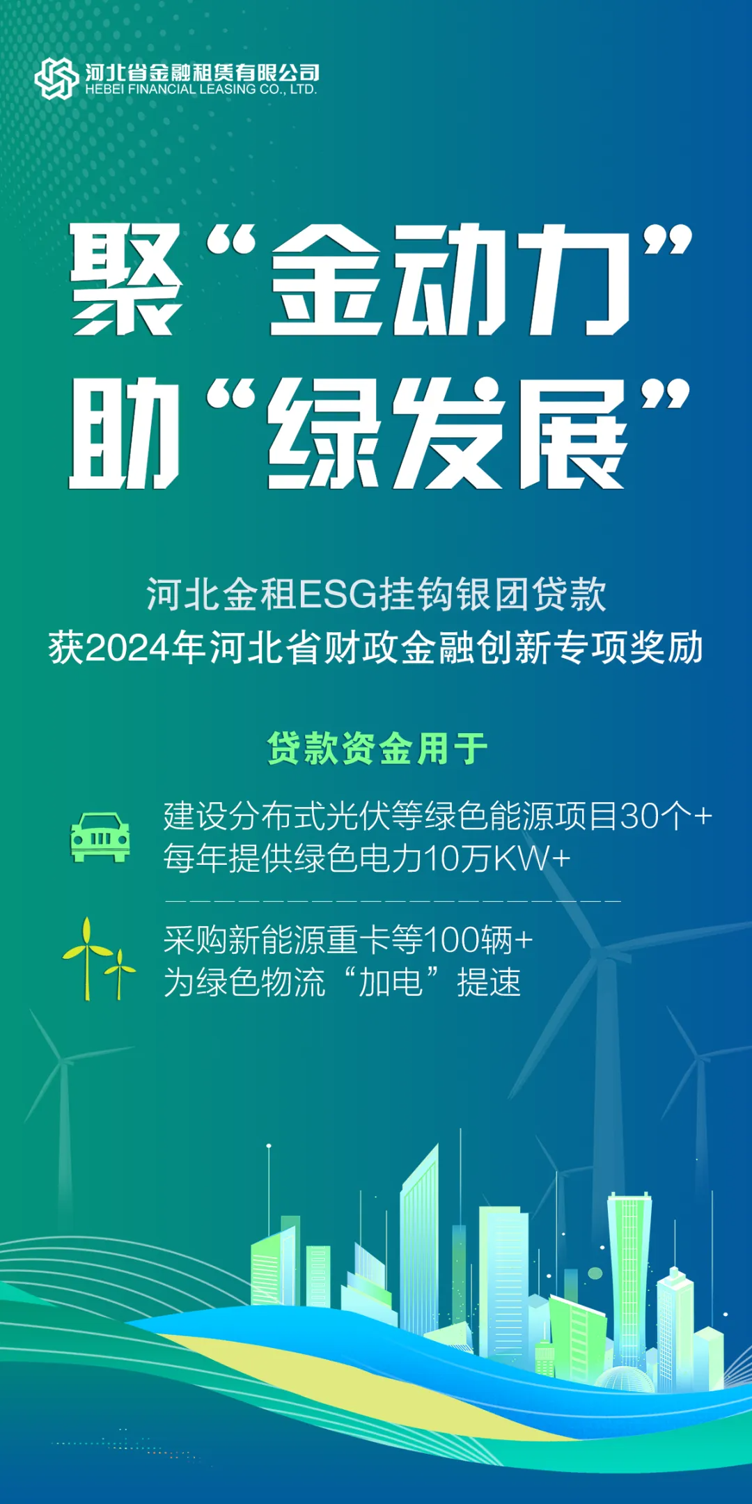 河北省財政2024年“合力支持企業發展專項資金項目”評選結果日前公示,河北省金融租賃有限公司(以下簡稱“河北金租”或“公司”)ESG掛鉤銀團貸款項目在評選中脫穎而出,獲得金融創新類專項獎勵。公司履行企業社會責任,探索綠色租賃業務的經營實踐獲得了政府部門的高度認可。