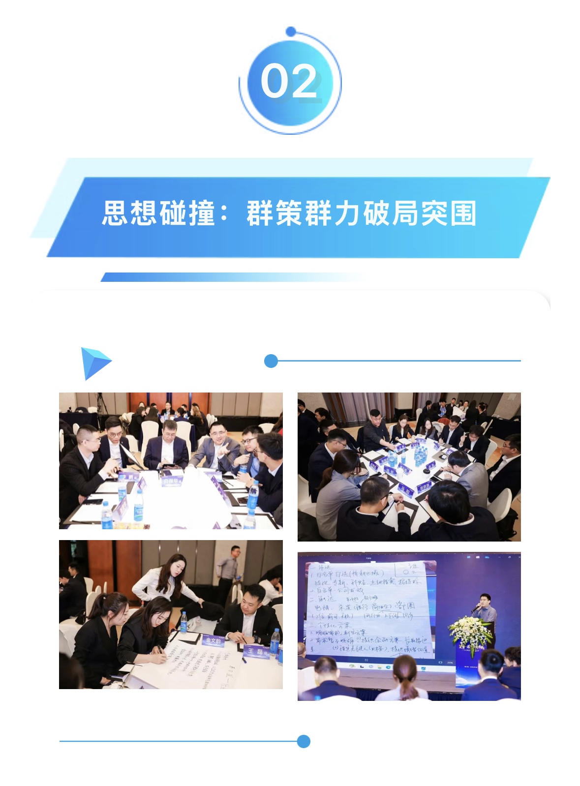 在“渠道深耕”“精準(zhǔn)獲客”“收益提升”“差異化破局”等核心議題的研討環(huán)節(jié),現(xiàn)場(chǎng)氛圍熱烈非凡,團(tuán)隊(duì)成員分組討論,打破區(qū)域與部門(mén)的劃分,以務(wù)實(shí)實(shí)戰(zhàn)的視角全身心投入到頭腦風(fēng)暴之中。從客戶(hù)畫(huà)像建模到同業(yè)競(jìng)爭(zhēng)策略,從資源整合路徑到風(fēng)控前置方案,豐富的實(shí)操經(jīng)驗(yàn)在團(tuán)隊(duì)間充分流動(dòng)、相互賦能,全方位推動(dòng)團(tuán)隊(duì)成長(zhǎng),為業(yè)務(wù)的發(fā)展補(bǔ)充了源源不斷的新動(dòng)能。