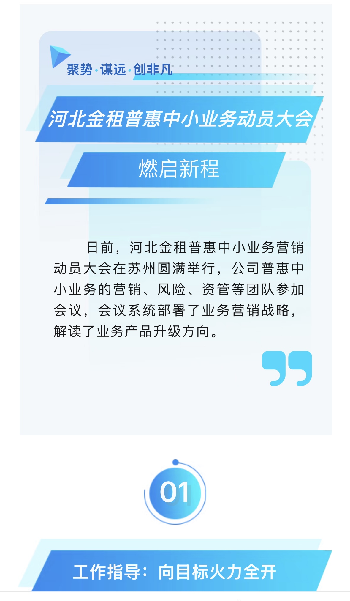 這場(chǎng)集結(jié)思想力、戰(zhàn)斗力的動(dòng)員會(huì),標(biāo)志著公司普惠中小業(yè)務(wù)進(jìn)入戰(zhàn)略攻堅(jiān)期,全體員工將以"首戰(zhàn)即決戰(zhàn)"的決心,把研討成果轉(zhuǎn)化為破局動(dòng)能,全力沖刺全年的戰(zhàn)略目標(biāo),為公司高質(zhì)量發(fā)展注入強(qiáng)勁動(dòng)能!