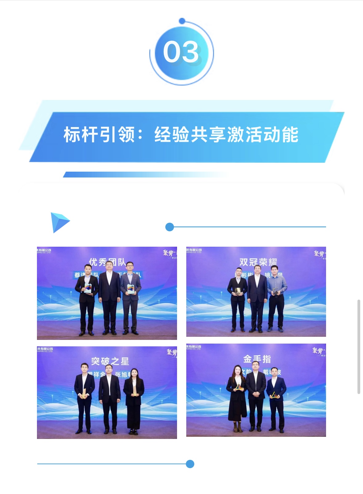 在榮譽(yù)時(shí)刻環(huán)節(jié),21位優(yōu)秀員工依次登臺(tái),接受屬于他們的榮耀時(shí)刻。通過(guò)優(yōu)中選優(yōu),團(tuán)隊(duì)推出由6位業(yè)務(wù)精英,登臺(tái)分享業(yè)務(wù)破局密碼,內(nèi)容涵蓋客戶(hù)談判策略、優(yōu)秀團(tuán)隊(duì)經(jīng)營(yíng)理念、渠道建設(shè)經(jīng)驗(yàn)等……現(xiàn)場(chǎng)伙伴受益匪淺。