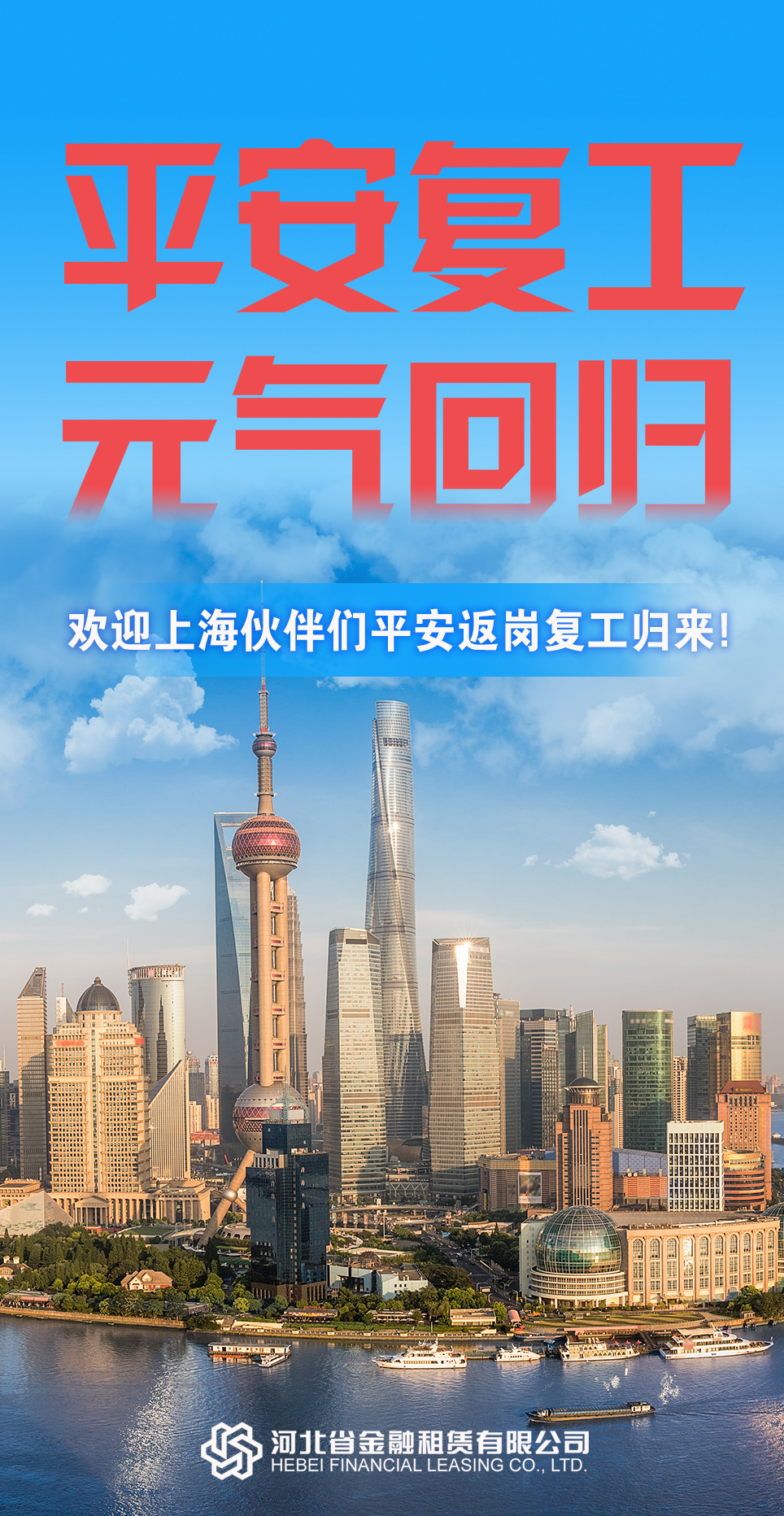 初夏降臨,上海于6月1日迎來(lái)有序復(fù)工復(fù)產(chǎn)復(fù)市。 兩個(gè)多月來(lái),上海區(qū)域的河北金租人嚴(yán)格做好疫情防控,居家完成工作任務(wù),穩(wěn)定提供金融服務(wù)。 今天,歡迎大家平安歸來(lái),重新投入業(yè)務(wù)一線! …